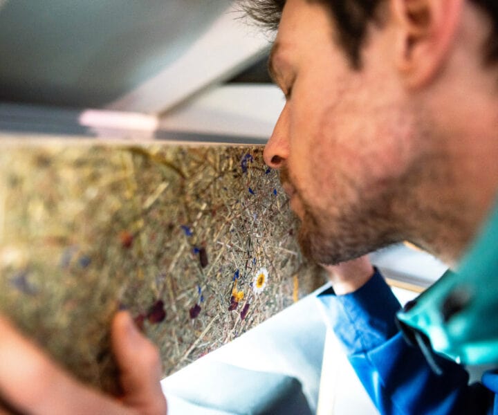 Naše alpské seno pochází přímo z regionálních horských luk v Tyrolsku. Společně s barevnými okvětními lístky kopretiny, růží, chrpy, vřesu, levandule a květů slunečnice je naše seno pečlivě proséváno a z velké části ručně zpracováváno do nádherných přírodních povrchů. Celý proces podléhá přísné kontrole kvality.