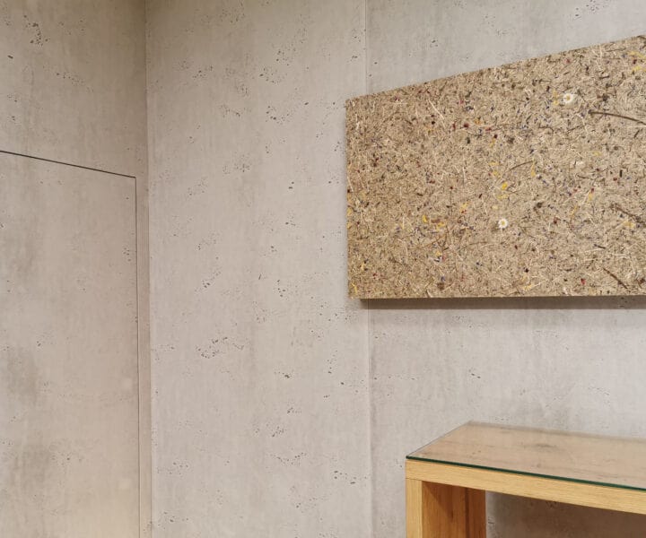 Obrazy jsou vyrobeny z recyklovaných PET lahví. Jsou pečlivě dokončeny v integrační dílně, kde jsou opatřeny povrchy Organoid. na lněném přírodním podkladu, které jsou klimaticky neutrální a vyráběné v Tyrolsku. Jsou recyklovatelné, vhodné pro alergiky, nebělené, prodyšné a bez chemických přísad. Jsou certifikovány OEKO TEX® STANDARD 100 a zlepšují doby dozvuku: Alpha-w až o 0,8. Udržitelné akustické obrazové moduly poskytují zdravější a uvolněnější vnitřní atmosféru pro lidi v kancelářích, restauracích nebo doma, čímž zvyšují produktivitu a relaxaci.