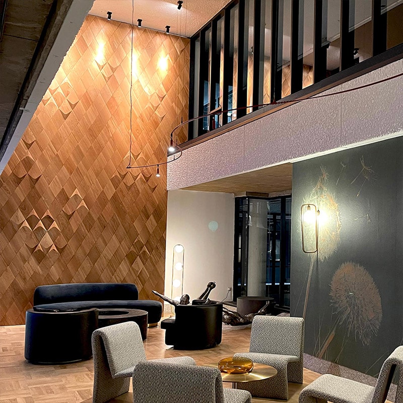 Kolekce plochých panelů se vyznačuje minimalistickým designem, který dovolí vyznít přirozenou krásu dřeva. Dvojrozměrné tvary kolekce lze instalovat na zeď i podlahu.