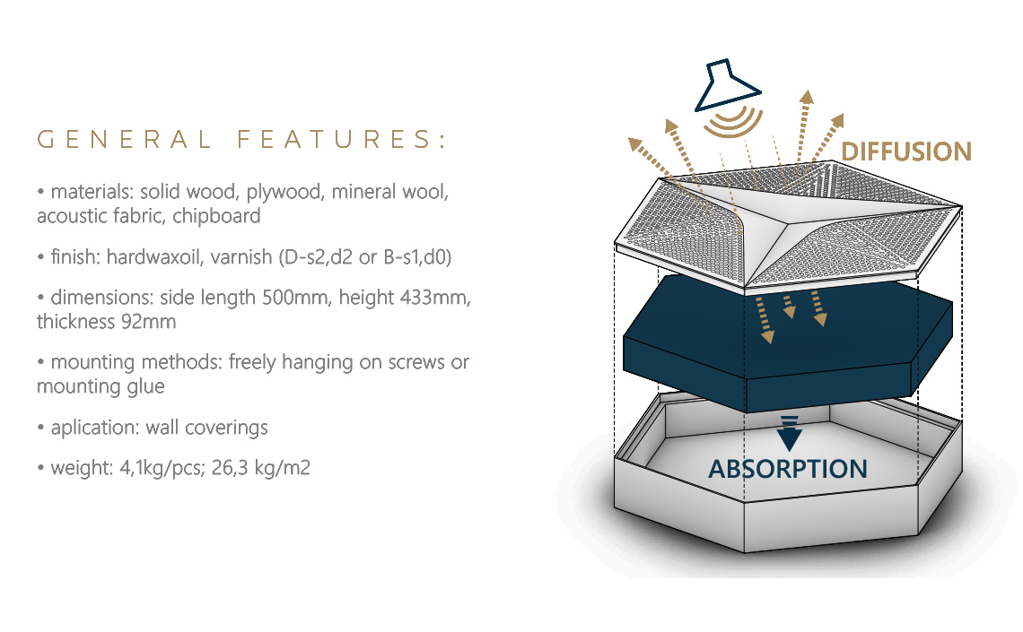 Série inovativních akustických panelů HEXAGO vznikla v úzké spolupráci se specialisty z AGH University of Science and Technology v Krakově.