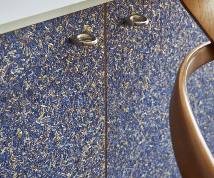 Povrch připomínající jasně modrou oblohu navozující pocit klidu. Tento exkluzivní povrch tvoří modré okvětní lístky chrpy. Textura a barvy okvětních lístků tvoří jedinečnou strukturu navrženou přírodou. Pro výjimečný design interiéru.