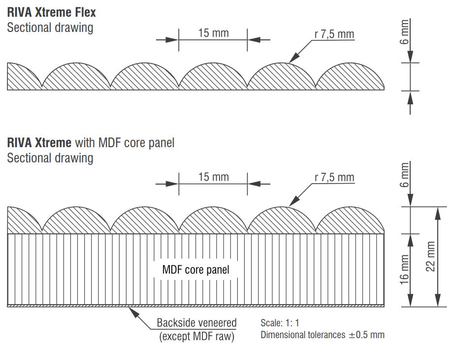Elegantní obkladový panel tvořený malými natěsno poskládanými válci, najde uplatnění jak na rovných, tak na obloukových plochách. Velmi jemný rytmus členění desky vytvoří pro oko příjemný detail, který zapadne do moderních i retro interiérů.